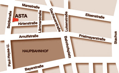 Unser Haus befindet sich im Zentrum, nur eine Gehminute von dem Münchner Hauptbahnhof.